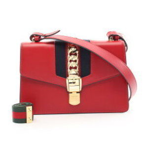 Gucci Sylvie Web Shoulder Bag Leather Red