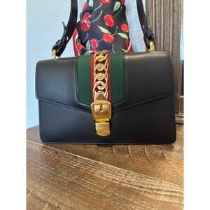 Elevate your collection with this stunning Gucci Sylvie Shoulder Bag, featuring the iconic gold chain detail and signature web stripe. Crafted with impeccable Italian design, this beauty includes a detachable crossbody strap for versatile wear.