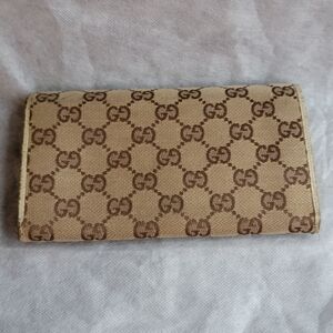 Elevate your style with this Gucci tan monogram clutch. Perfect for any occasion, this elegant bag combines luxury and functionality. has signs of use