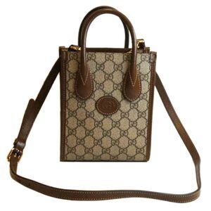 Gucci Tan Monogram Shoulder Bag with Red and Green Stripe Pre-owned