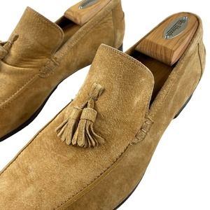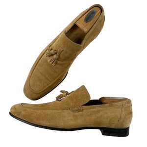 Elegant tan suede loafers. Features tassel detail. Perfect for casual or formal wear.