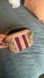 Elegant Gucci pouch with signature monogram and bold burgundy stripe. Perfect for essentials. Well loved but plenty of life left in her! Purchased at a local designer consignment shop that authenticates all their items. Burgundy and muted pink accents against the standard Gucci monogram in brown.