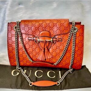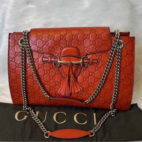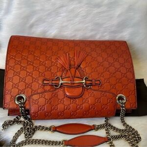 Gucci Tangerine Embossed Leather Shoulder Bag