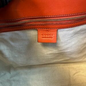 Authentic pre loved Gucci shoulder bag in leather. Good condition an interior lining a little dirt see photos.