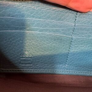 Gucci Teal Leather Zip Around Long Wallet Bamboo Tassel Detail