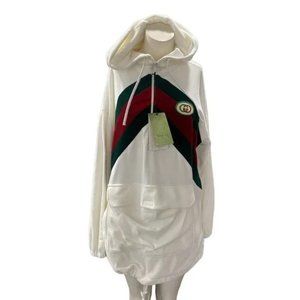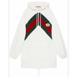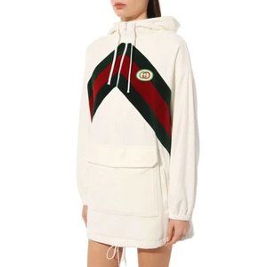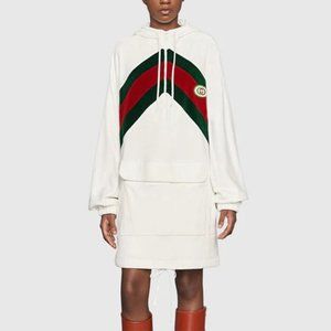 Expertly crafted from a luxurious cotton/polyamide blend, this Gucci Technical Jersey Dress effortlessly combines sporty and chic elements. The voluminous hood, adjustable drawstrings, and soft cotton jersey bottom offer both comfort and durability for a versatile and stylish look.