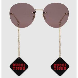 Gucci Tiger GG Round Frame Sunglasses With Pendant Gold Brown Black 690989