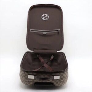 Condition: This Gucci Supreme Canvas Y2K GG Leather Carry On Compliant Luggage Suitcase is in good condition with some scratches on the plastic hardware and leather handle, along with some cracks near the handle. It is fully functional and comes with authentication from Entrupy, including a COA, lock, paperwork, and luggage tag.