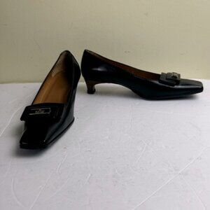 Gucci Tom Ford Vintage NEW Leather Logo Square Toe Kitten Heel shoes Loafers 7B