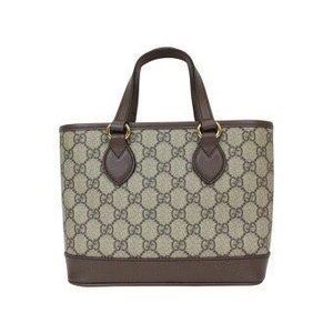 Gucci Tote Bag Beige Ebony Brown GG Supreme Leather Handbag