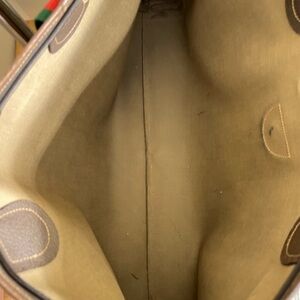 Large Gucci Tote, Sherry Line, Oversized. One main large compartment with large exterior pocket. Canvas in very good condition. Leather trim in good condition, but shows minor wear. Signature green and red handles. Strong/Sturdy Bag