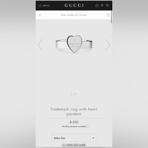 Slightly used Gucci heart ring with all original packaging! In great condition and super cute!