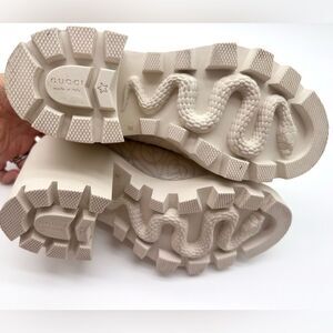 Gucci Trip Combat Zip Boots GG Logo White Quilted Rhombus Block Heel EU 38 US 8