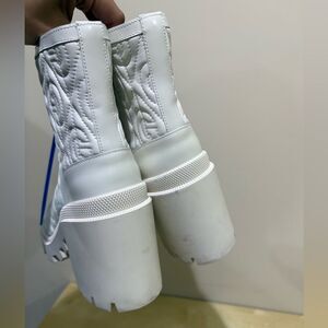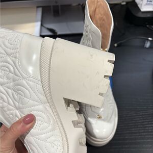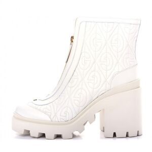 Gucci Trip Zip Front Ankle Boots White Rhombus GG Quilted Block Heel