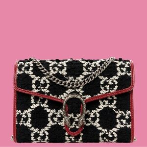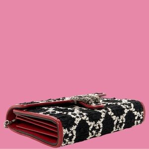 Gucci Tweed GG Monogram Mini Dionysus Chain Wallet Black White Romantic