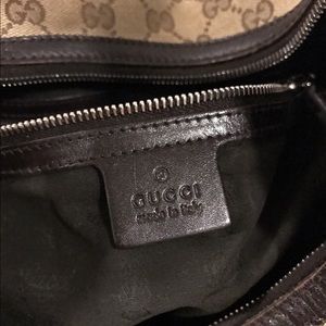 Gucci GG Twins Large Hobo Bag Beige/Ebony GG canvas print, black leather trim and goldtone and silvertone GG logos on either side of the leather shoulder strap.The exterior canvas has minor tears in fabric from where the bag naturally folds at the top and also on bottom, it also has some marks on the bottom(see pictures). The interior lining is clean with light signs of wear but overall is in great condition.Comes with dust bag.