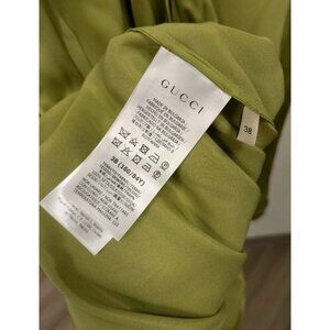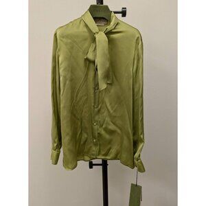 Gucci Uniform Collection Silk Bow Tie Neck Blouse Top Green 38