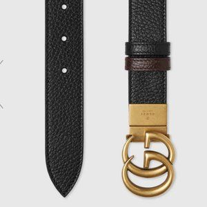 Gucci Unisex Reversible Double GG Black Leather Belt Black To Brown Size 26