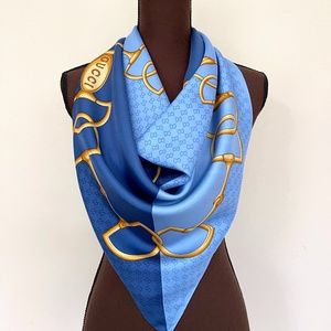 Gucci Unisex Scarf Iconic Horsebit Logo Print Silk Wrap
