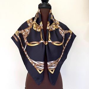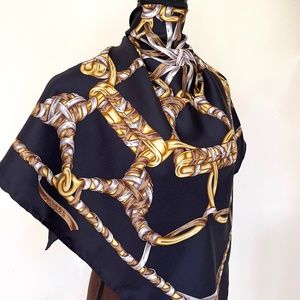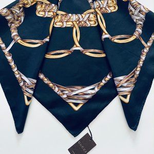 Authentic Gucci Iconic Black Gold Silk Scarf