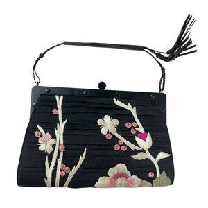 Gucci VINTAGE '03 Black Satin Pleated Multi Embroidered Tassel Mini Shoulder Bag