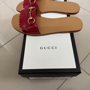 Gucci Varadero Horsebit Fringed red leather sandals/slides size 38-NIB