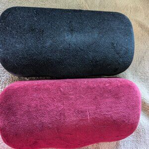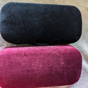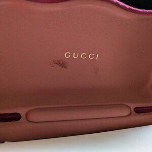 Elegant Gucci eyeglass case in deep burgundy velvet. Sophisticated design