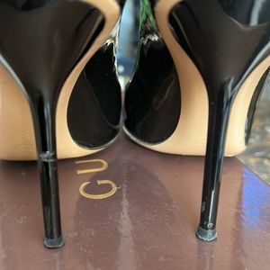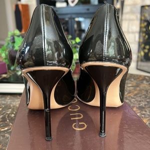 BLACK GUCCI Vernice heels. Lightly worn. Small Scuffs on both heel base. See pics. Flaws reflected in price. 100% AUTHENTIC