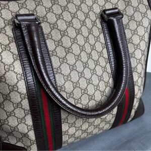 Gucci - Vintage, Authentic - GG Monogram Canvas Tote & Briefcase - Beautiful Bag. Some natural wear on bag edges, see photos. Includes GG Gucci carrying bag.