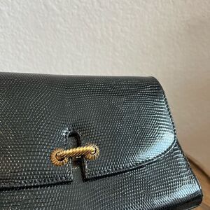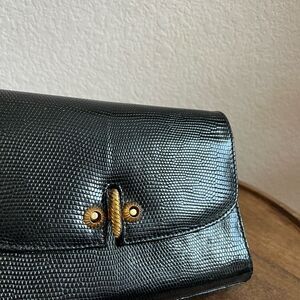 Gucci Vintage Black Embossed Leather Fold-Over Clutch Bag Purse Women's