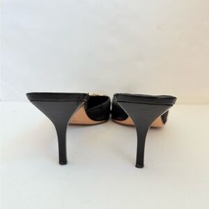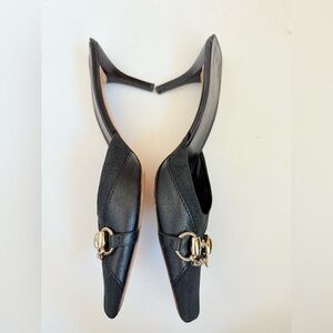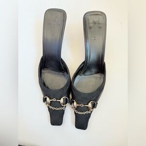 Gucci Vintage Black GG Canvas Leather Chain Horsebit Mule Heels 9.5