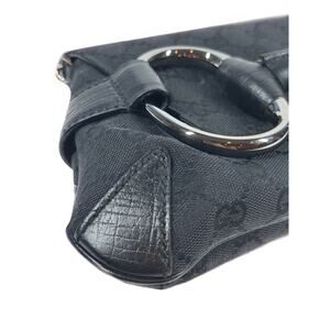 Gucci Vintage Black GG Monogram Horsebit Large Chain Shoulder Clutch Bag