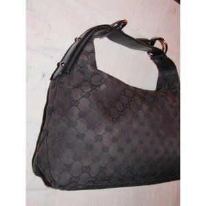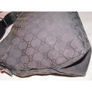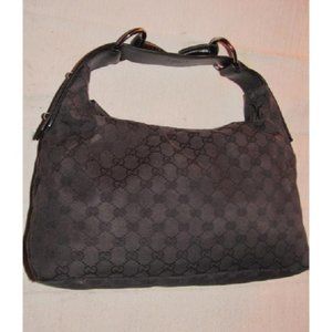Gucci Vintage Black HOBO Large G Logo Canvas And Black Leather