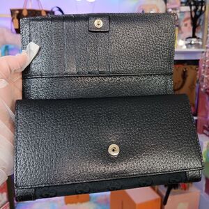 Gucci Vintage Black Monogram Canvas Leather Double Flap Snap Wallet W Box