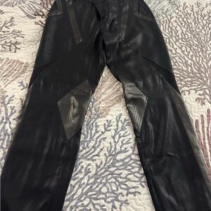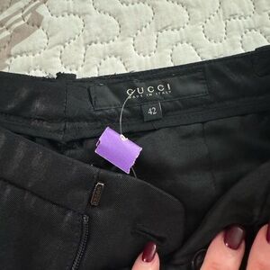 Elegant black trousers by Gucci. Made in Italy. Perfect for any occasion. Size 42 Italian which is a size 6 USA. Smoke free house. Material is not leather although pics appear as leather patches. I can send a video as well.