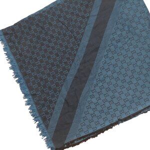 Gucci Vintage Blue Dual-Tone Reversible Monogram Stripe Shawl Wrap