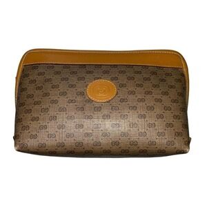 Gucci Vintage Brown GG Guccissima Canvas Medium Cosmetic Case Clutch