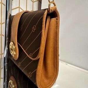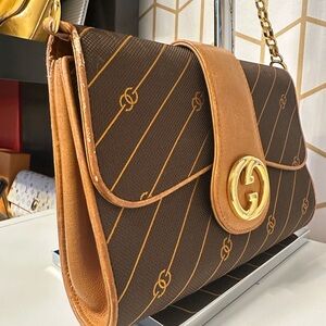 Gucci Vintage Brown GG Logo Monogram Canvas Leather Gold Chain Shoulder Bag.