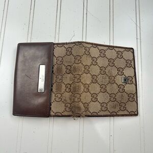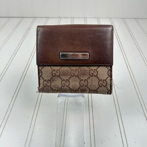 Gucci Vintage Brown Leather Canvas GG Bifold Wallet