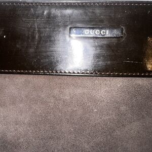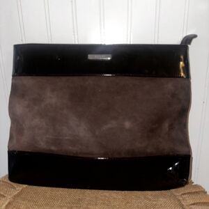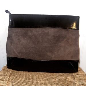Gucci Vintage Brown Suede Patent Leather Large Clutch Authentic EUC