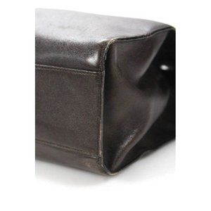 Gucci Vintage Dark Brown Leather Satchel with Gold Square G Tote Closure