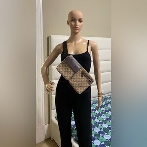 Gucci Vintage Double Belt/Crossbody Bag GG Canvas with Leather