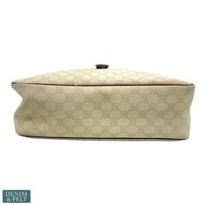 Gucci Vintage GG Monogram Beige Canvas Shoulder Bag Brown Leather Trim Purse