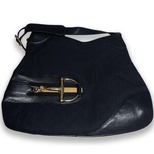 Gucci Vintage Horsebit Hasler Hobo Black GG Monogram Canvas and Leather w/Gold