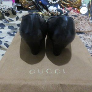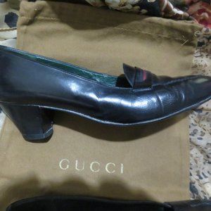 Gucci Vintage Italian Leather Navy Blue Pumps size 38 or US 8 Gucci Red Stripe