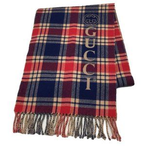 Gucci Vintage Logo Wool Check Scarf