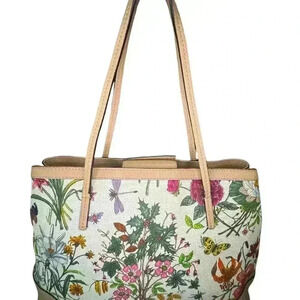 Gucci Vintage Medium Floral Camvas Pink/Beige Leather Tote Bag.