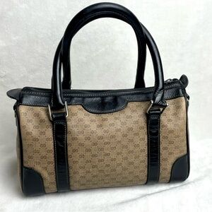Gucci Vintage Micro GG Boston Bag circa 1970’s in Canvas & Black Leather Accent
