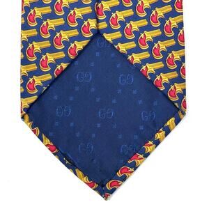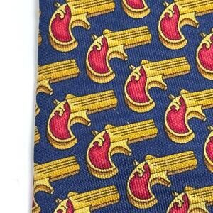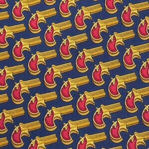 Vibrant Navy/Red/Yellow 100% Italian Silk Necktie with Pistol Pattern through out! VERY RARE DESIGN!