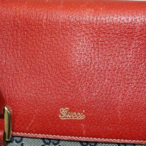 Gucci Vintage Red and Navy GG Monogram Satchel